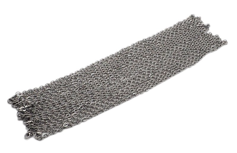- HK ハンドメイド用 ステンレス ネックレスチェーン 幅5ミリ 50CM 10本セット 送料無料