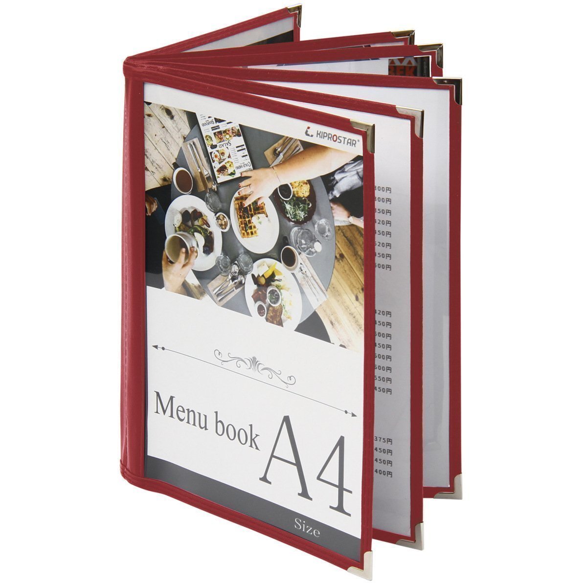 - 【新品】メニューブック 12ページ(6枚12面) A4対応 中綴じ えんじ メニュー表 お品書き テーピング ファイル