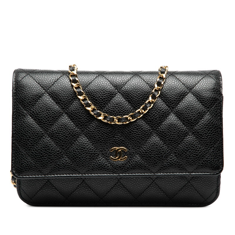 - シャネル マトラッセ ココマーク チェーン ショルダーバッグ ウォレットバッグ A33814 ブラック キャビアスキン CHANEL 【中古】