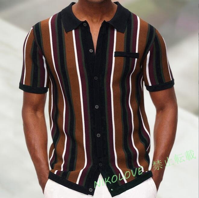 > ☆新品 メンズ ポロシャツ Tシャツ 半袖 ニット ストライプ柄 涼しい カジュアル シャツ 夏物 ゴルフウェア トップスM-3XL