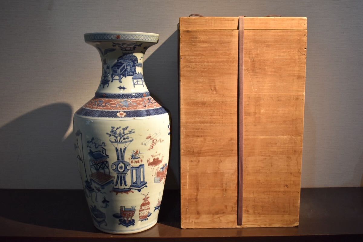 - 【GE】R375【コレクター所蔵品】時代 染付大花瓶/中国古玩 中国美術 色絵 花入 骨董品 時代品 美術品 古美術品 ba