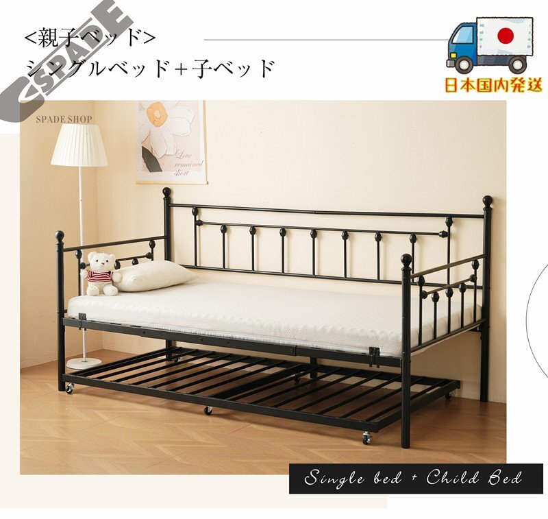 - 【国内発送】親子ベッド 二段ベッド 多段ベッド シングル ベッド コンセント付き 宮棚付き パイプベッド ホワイト ブラック シンプル