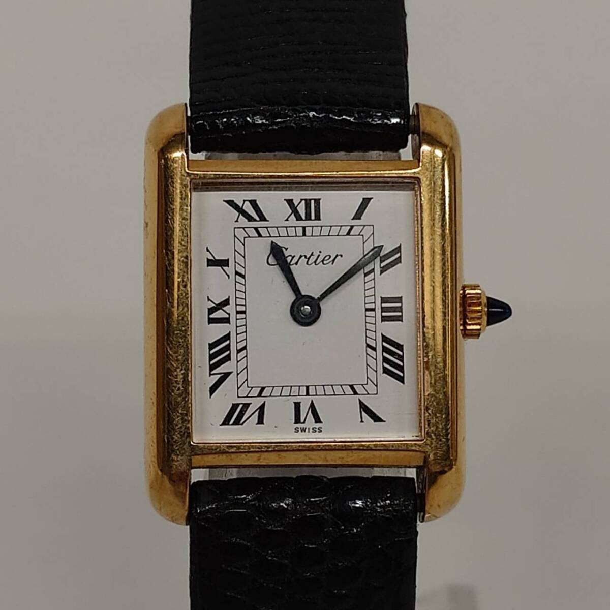 > 1円~【実動】カルティエ Cartier マストタンク 手巻き レディース腕時計 ホワイト文字盤 スクエア ローマン 18K ELECTROPLATED K101611