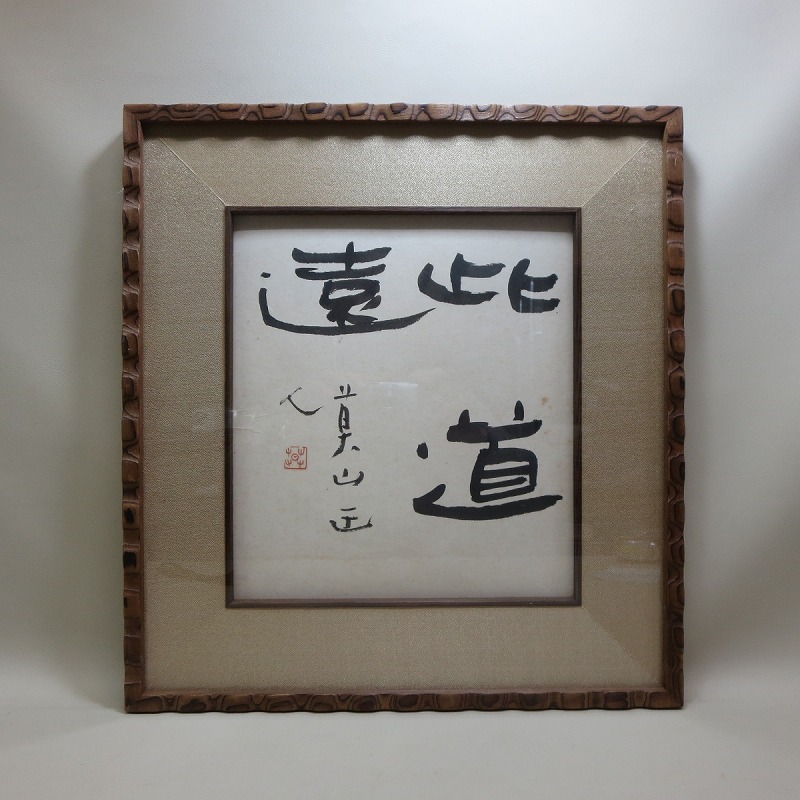 - 10◇真作◇ 榊莫山 肉筆「此道遠」色紙 額装 書 墨◇希少◇10