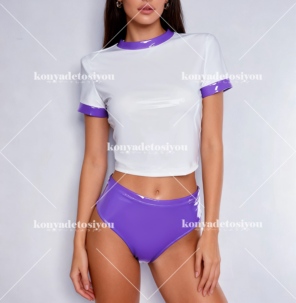 > 23015白&薄紫3XL 超光沢 可愛い トップス+ブルマ コスプレ レースクイーン 体操服 水着 仮装 変装 イベント コスチューム