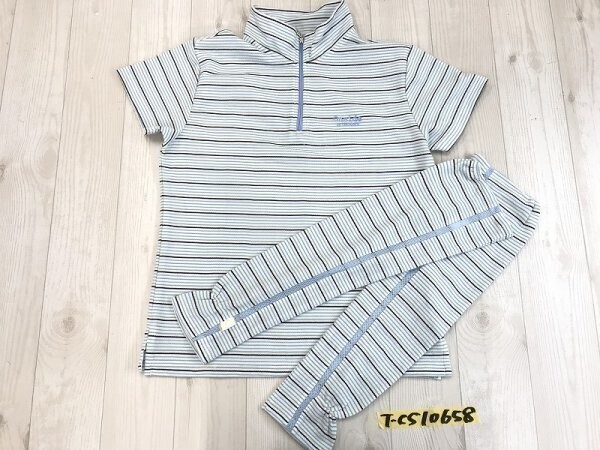 > ONSIDE BY PERSON’S パーソンズ レディース アームウォーマー付き ボーダー 鹿の子 半袖ポロシャツ M 青緑