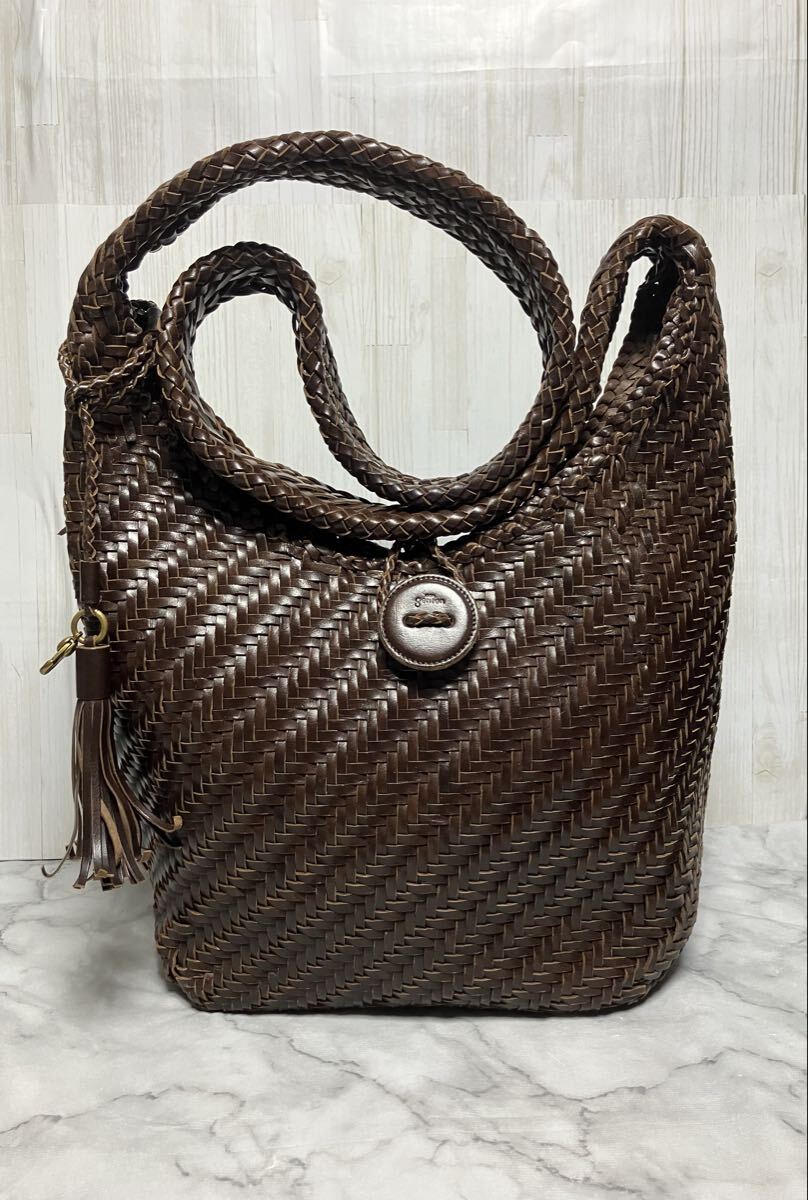 - 希少 美品 genten ゲンテン 編み込み レザー ショルダーバッグ 茶