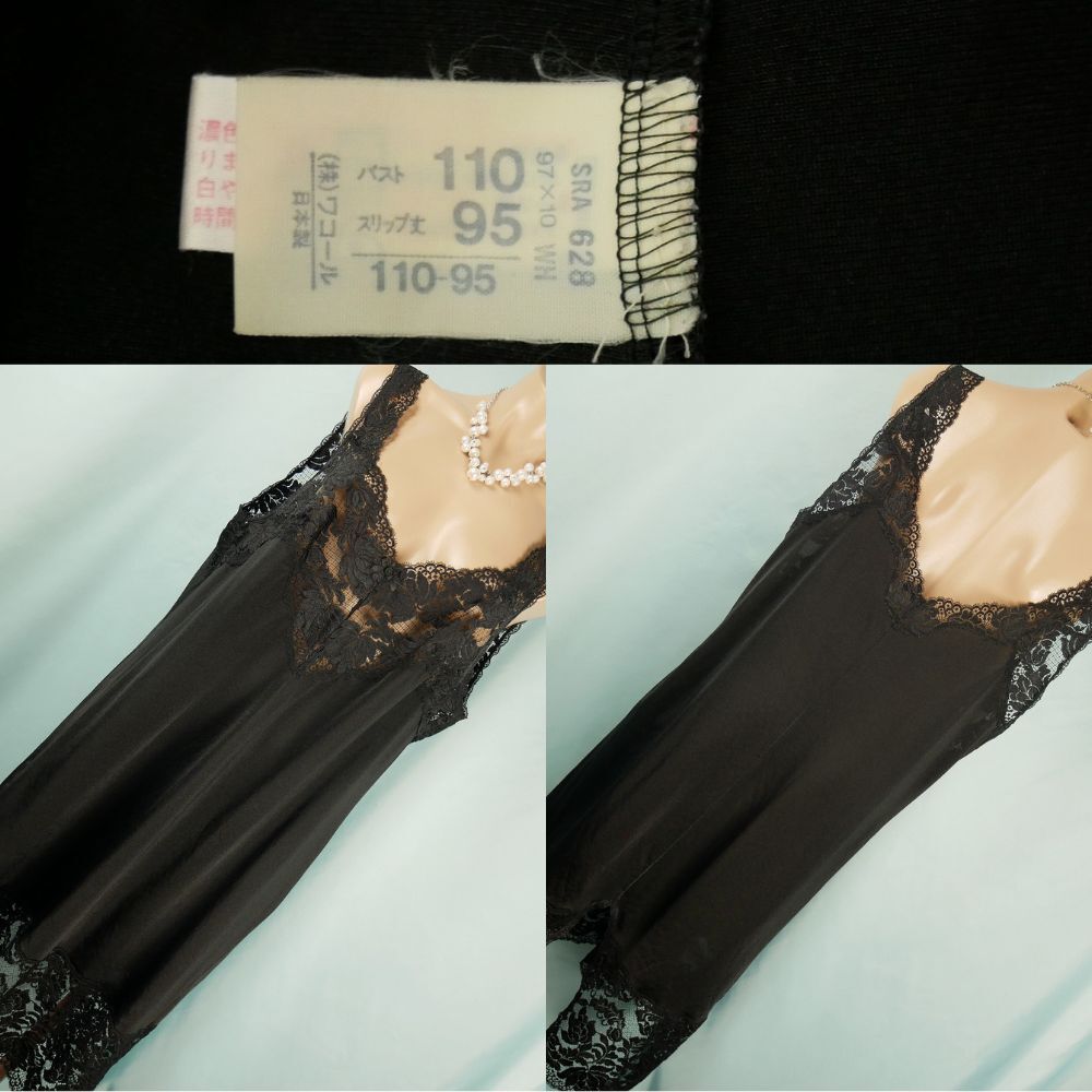 - 6087 ワコール モダンゴージャス花柄レース スリップ 3L110-95 大きいサイズ ブラック