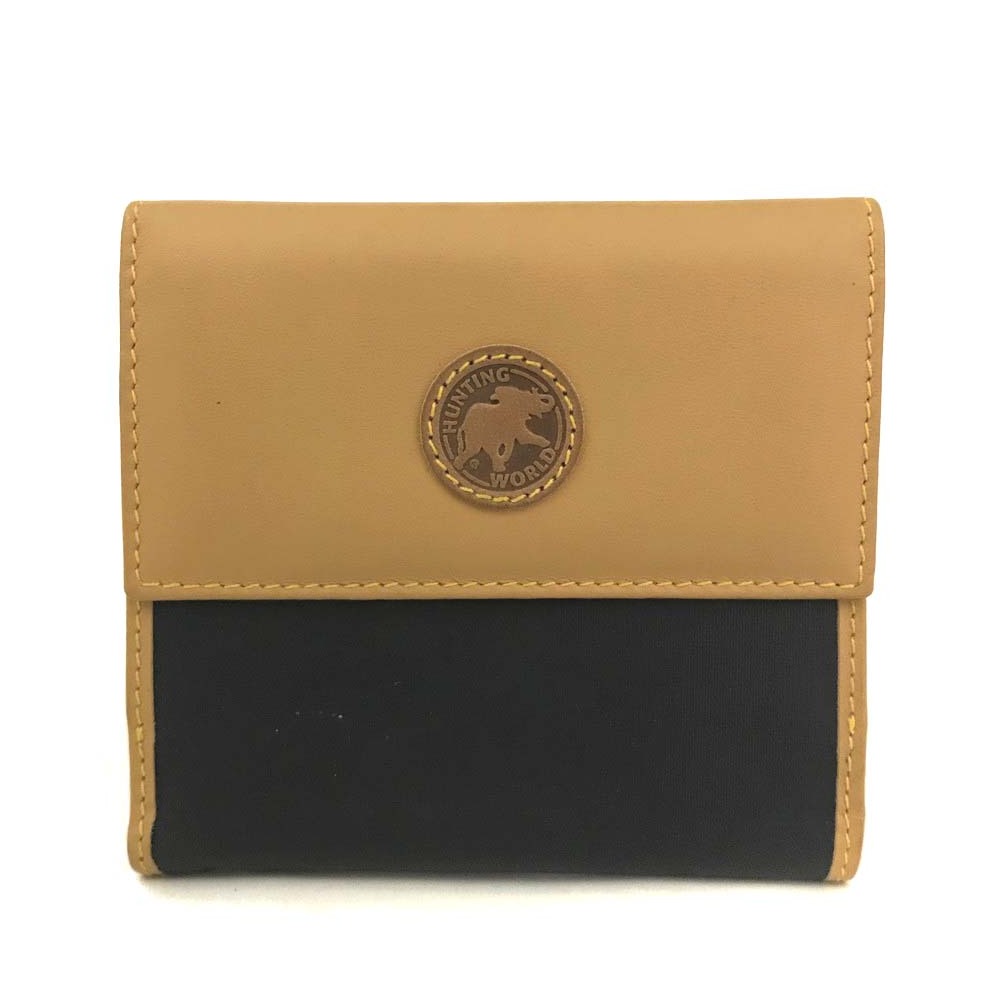> 1円 HUNTING WORLD ハンティングワールド ロゴ コーティングレザー バチュークロス 三つ折り財布 バイカラー /JP0721