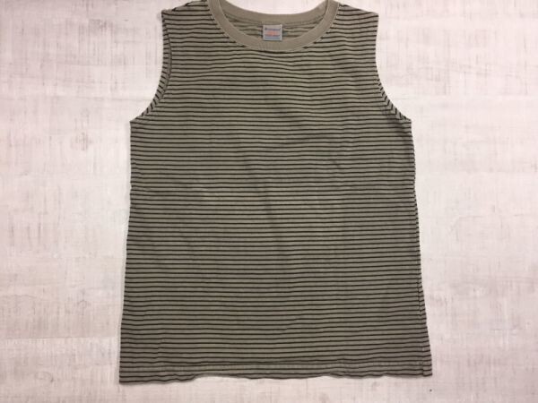 > チャンピオン Champion アメカジ ボーダー 後染め ノースリーブTシャツ 薄手スウェット レディース コットン100% M ベージュ