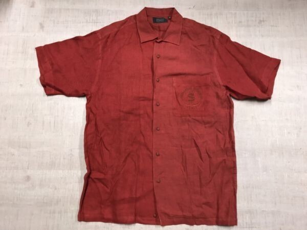 > ジャン=ルイ・シェレル JEAN-LOUIS SCHERRER レトロ トラッド ユーロマリン 刺繍 胸ポケット 麻リネン 半袖シャツ メンズ 日本製 M 赤