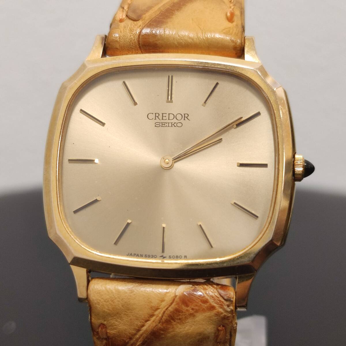 > セイコー クレドール 14K K14 クォーツ/電池交換済 5930-5080 純正ベルト・尾錠 ゴールドカラー スクエア SEIKO CREDOR ケース説明書付