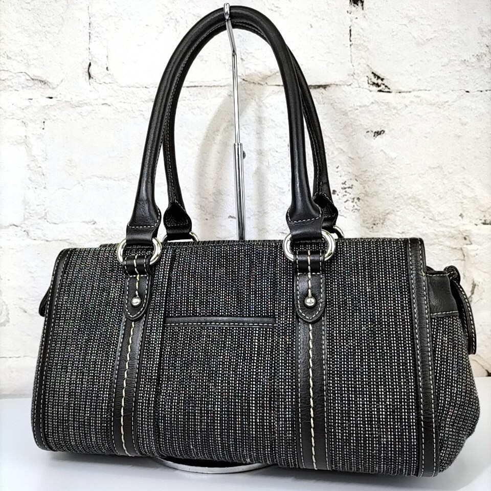 > 【 GINZA Kanematsu 】 銀座かねまつ 一部 レザー ステッチ ハンドバッグ 手提げ ミニトート レディースバッグ 黒 ブラック A