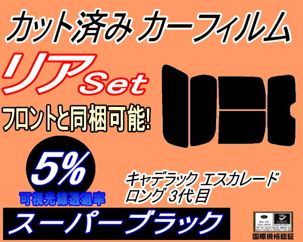- カーフィルム スーパーブラック カット済み リアセット キャデラック エスカレード ロング 3代目 (b) スモーク ガラスフィルム T1UL