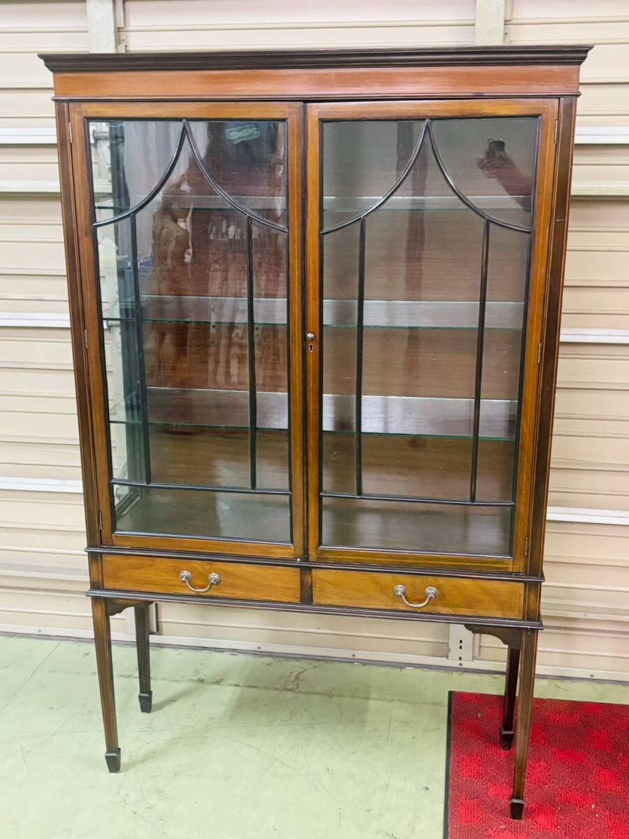 - 【英国アンティーク ヨーロッパ製】ディスプレイキャビネット ガラスキャビネット 飾棚 ショーケース 細脚 クラシック 時代物