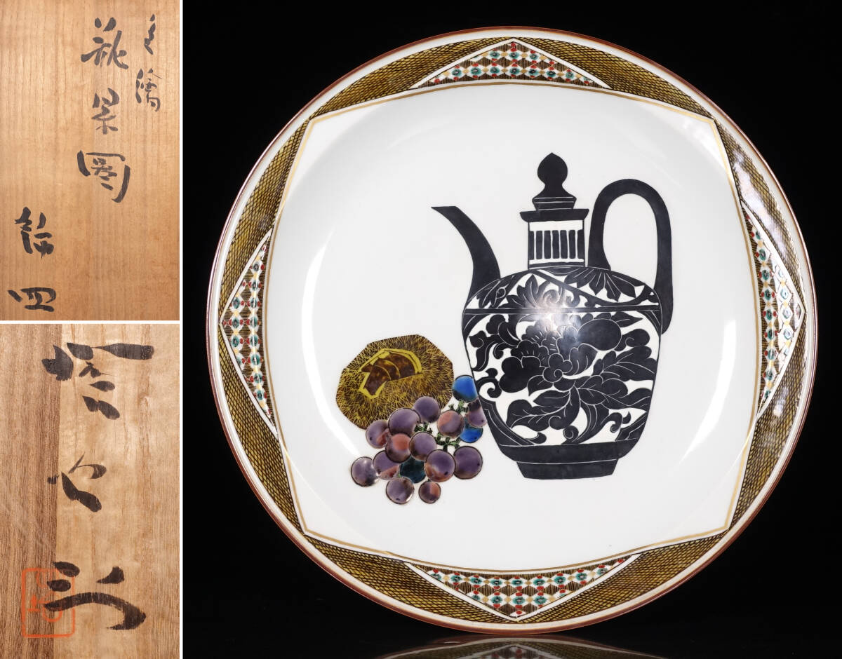 - 北出塔次郎 極希少作 色絵瓶景図 飾皿 大皿 幅34.3cm 共箱【九谷焼 色絵 金彩 大鉢 大花瓶 飾壷 北出不二雄】
