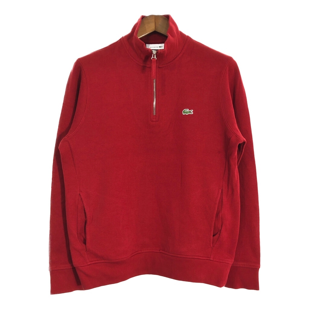 > LACOSTE ラコステ ハーフジップ コットン ニット セーター レッド(メンズ L )中古 古着 T2105 1円スタート