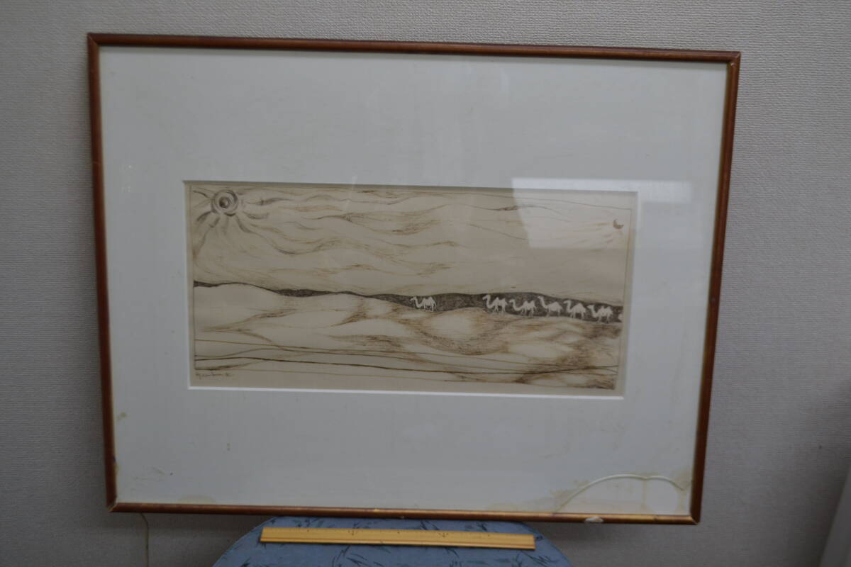 - B3)額装品 ラクダの画 版画と思われます 作者・タイトル不明 箱・共布無し