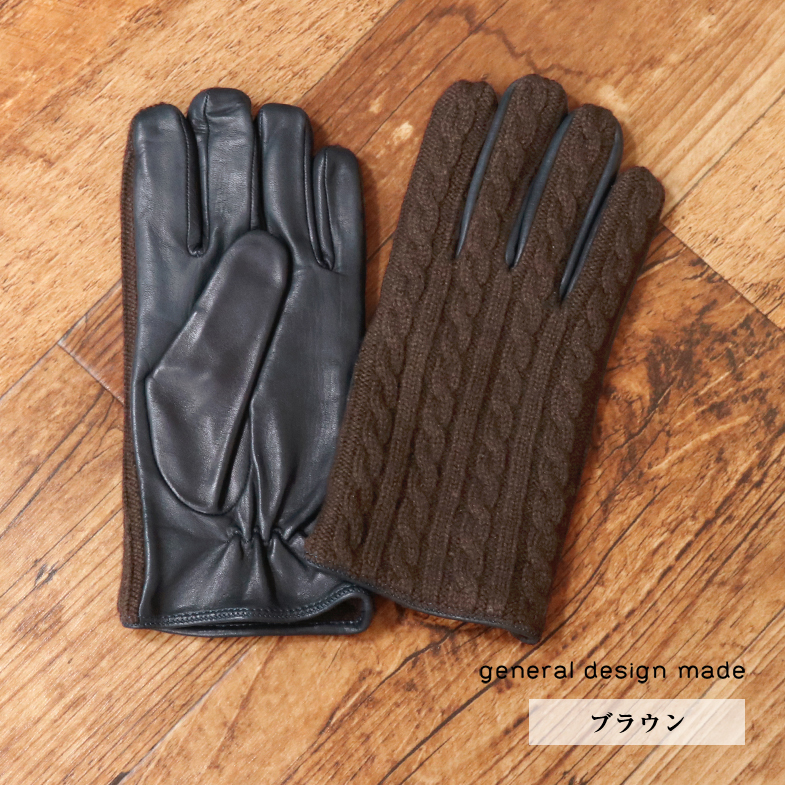 - 1円/general design made/イタリア製 ケーブル ニット レザー グローブ MEROLA メローラ コラボ 羊革 手袋 新品/茶色/ブラウン/jh296/