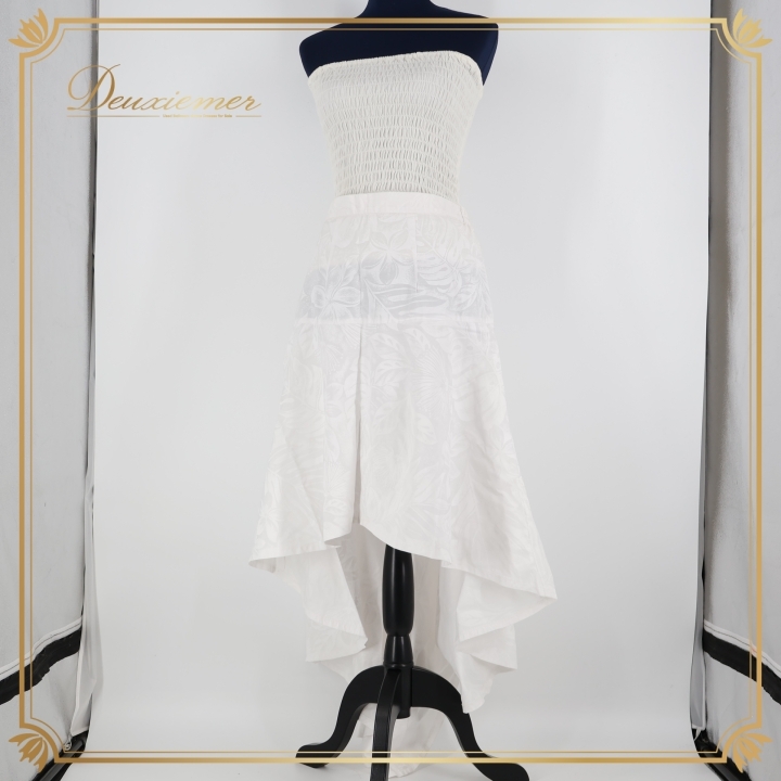 - フラダンス 衣装 ツーピース セットアップ 上下セット ホワイト系 アロハスタンダード 白 プルメリア柄 トップス スカート ALOHA STANDARDS
