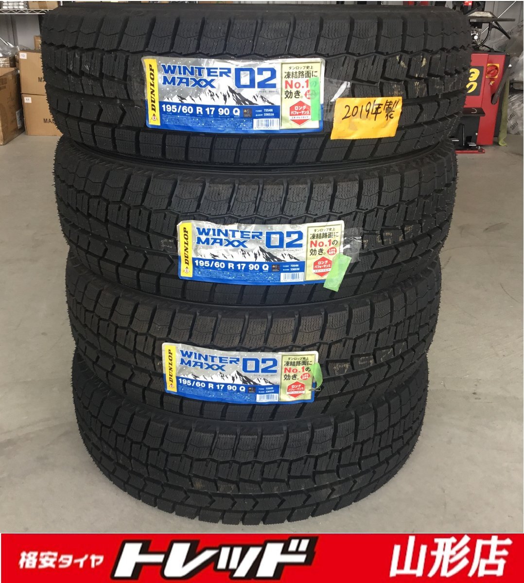 - 【新品アウトレット】山形店 スノータイヤ 4本セット ダンロップ ウィンターマックス02 195/60R17 2019年製 ライズ レックス 60プリウス