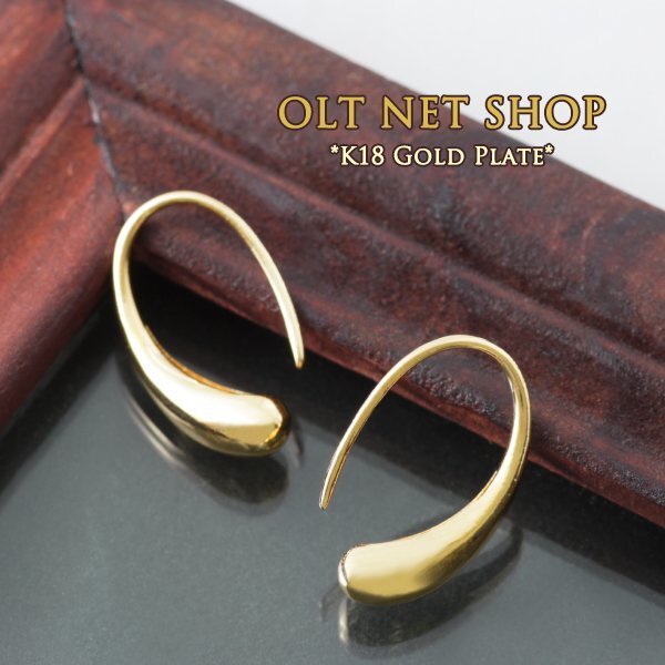 - 550円スタート/新品/ピアス/K18GP/ドロップ/雫/フック/イエローゴールド/18金/レディース/両耳/シンプル/しずく/ティア/メタル/上品/女性