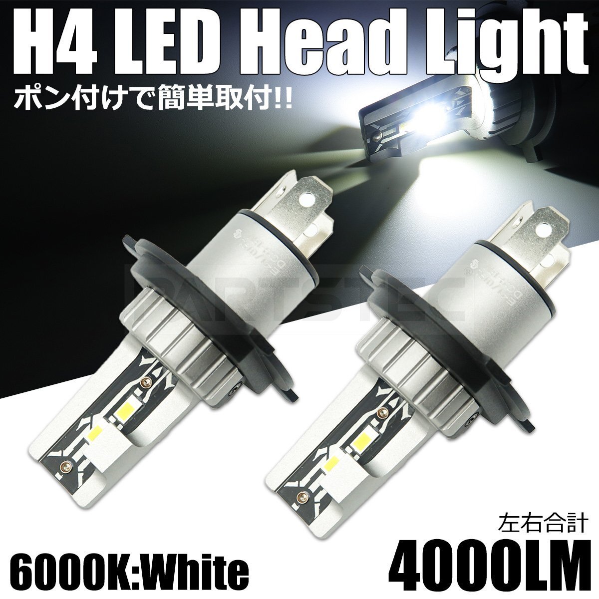 - H4 LED ヘッドライト バルブ 2個セット 6000K ホワイト 白 12V 純正交換 ショートタイプ Hi Lo 切替 ファンレス 静音 車検対応 / 156-129