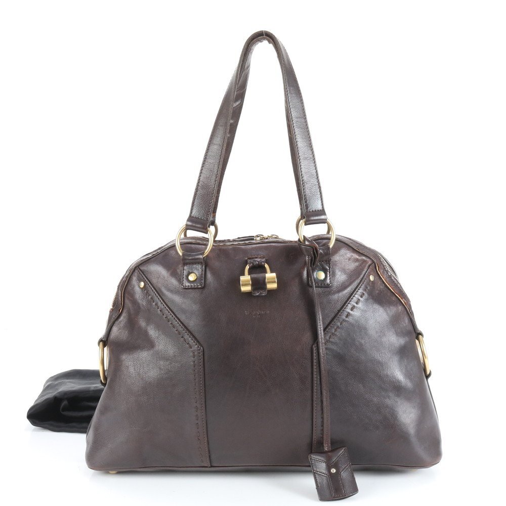 > 1円■極美品■YSL イヴ サンローラン■ミューズ レザー トート バッグ 肩掛け ショルダー ブラウン ゴールド 金具 レディース EUE CX35-4
