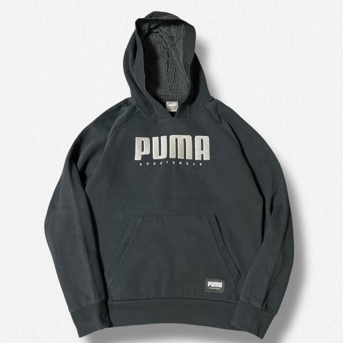 > PUMA フーディー裏起毛ロゴパーカー ブラック S ●洗濯プレス済● プーマ スウェット トップス プルオーバー 黒 スポーツウェア 古着/778