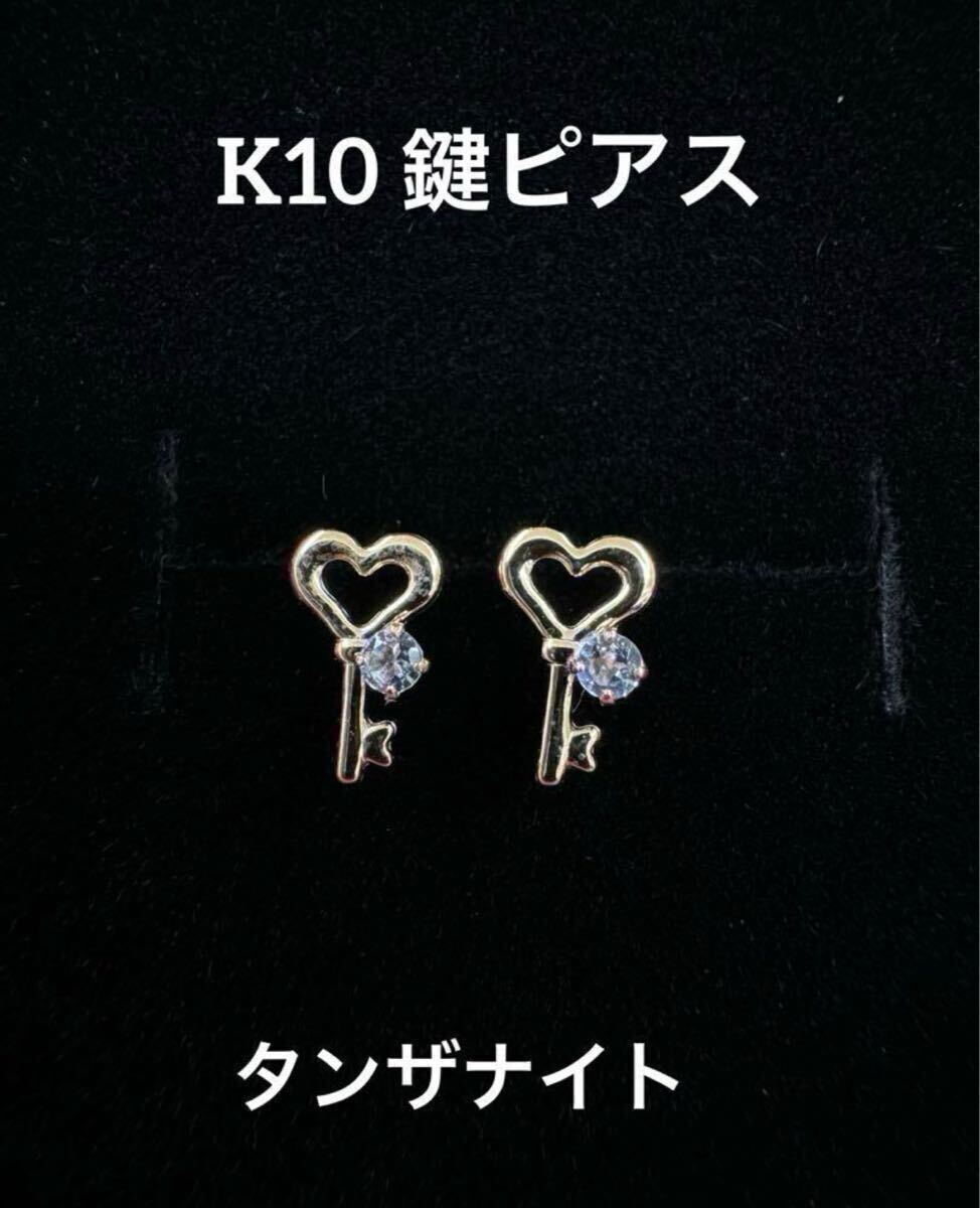 - 【新品】★K10 タンザナイトのカギピアスピアス k10 天然石 10金 12月生まれ 誕生石 華奢アクセ スキンジュエリー 華奢ピアス キーピアス
