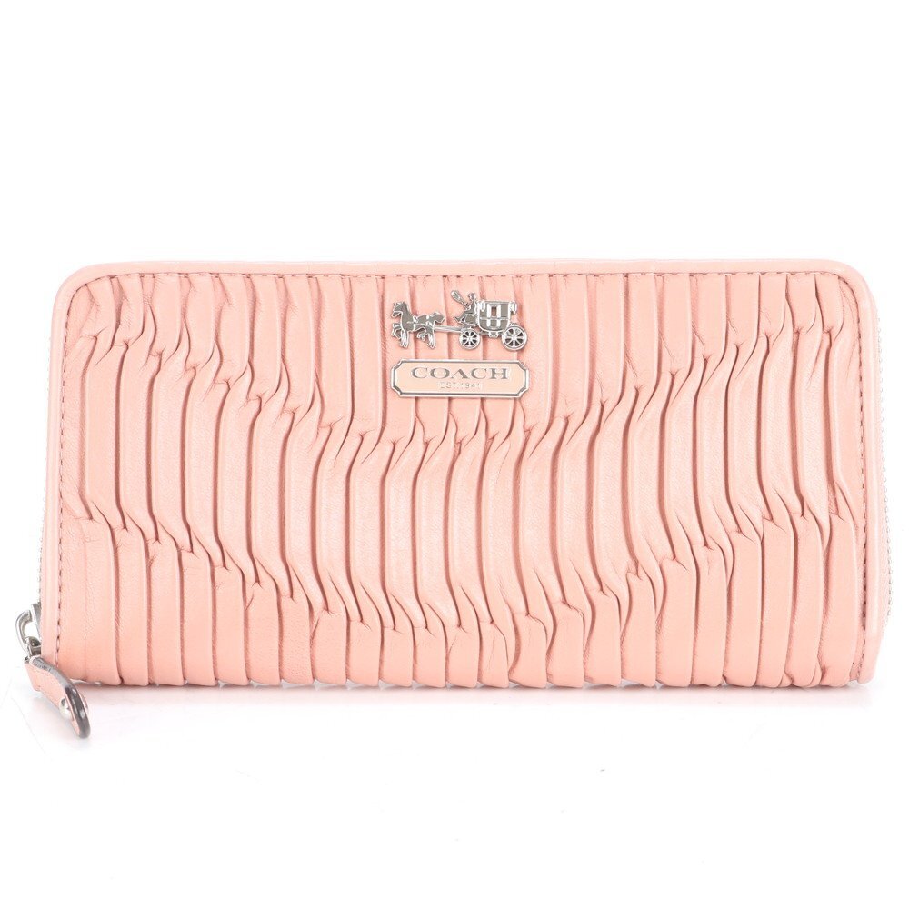 - 1円■極美品■コーチ■マディソン ギャザード レザー 長財布 ロング ウォレット ラウンドファスナー ピンク 二つ折り レディース RUE CP6-6