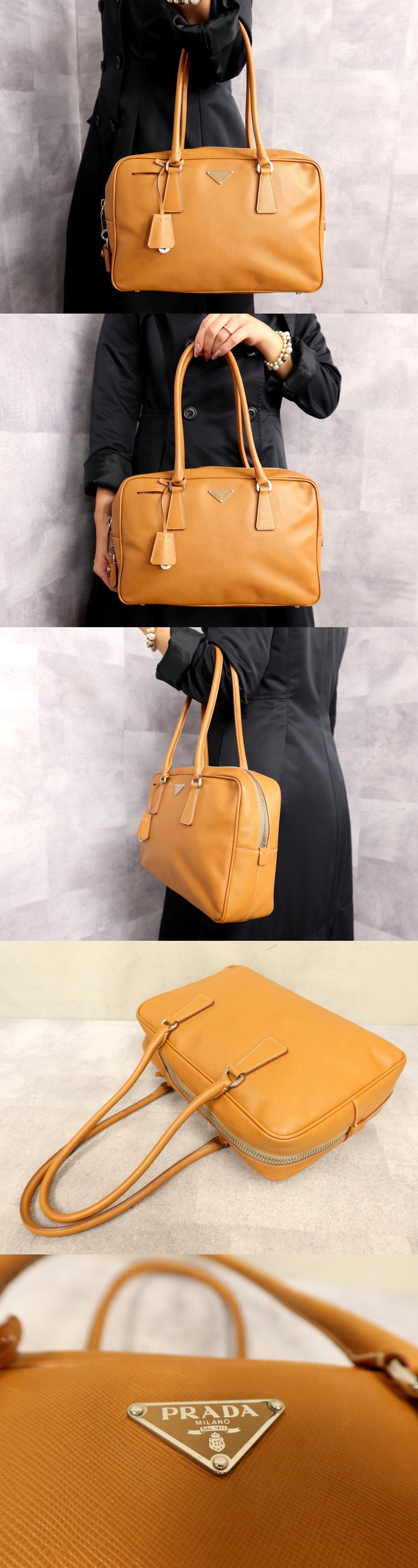 > ●超美品●PRADA プラダ●三角ロゴプレート●サフィアーノ レザー 本革●トート バッグ●キャメル●シルバー金具●B5 収納 かばん●Js61896