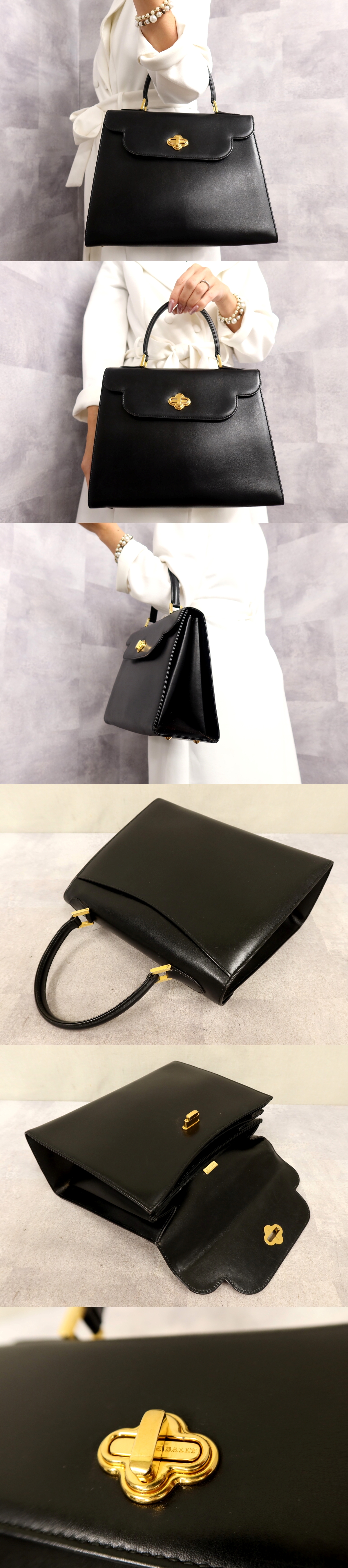 > ●超美品●BALLY バリー●トップハンドル●ターンロック●カーフ レザー 本革●ハンド バッグ●黒●ゴールド金具●腕掛け●かばん●Js62012