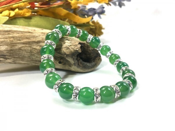 > 緑瑪瑙 パワーストーン ブレスレット 天然石ブレス 10mm メンズ・レディース (ロンデル:シルバー) 開運 浄化 数珠ブレス♪