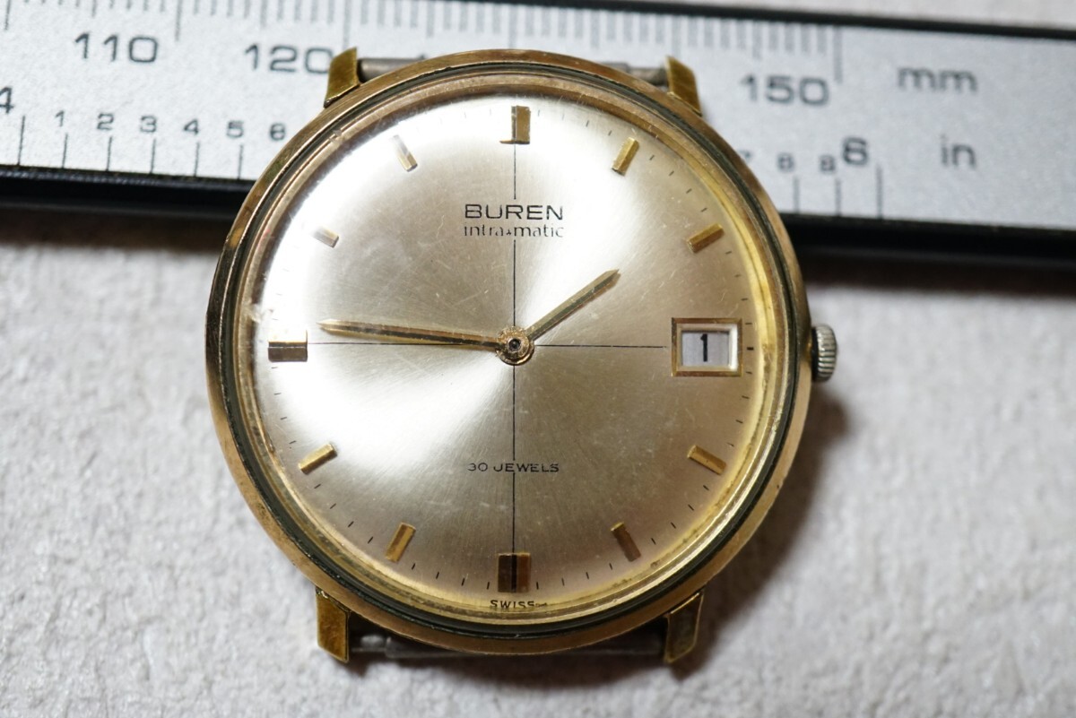 - F2014 稼動品 BUREN/ビューレン SWISS intra matic 30石 自動巻き フェイス 文字盤 メンズ 腕時計 アクセサリー ヴィンテージ ブランド