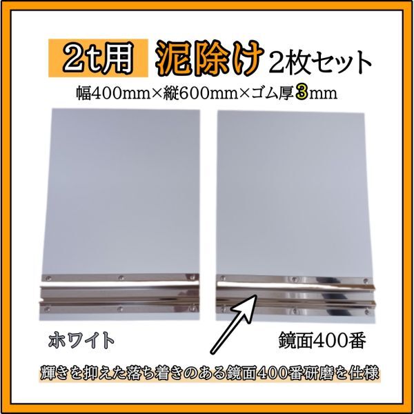 > 2t用 EVA泥除け ホワイト 鏡面ウエイト(400番研磨) 二山折り 幅400mm×縦600mm×厚み3mm 2枚セット