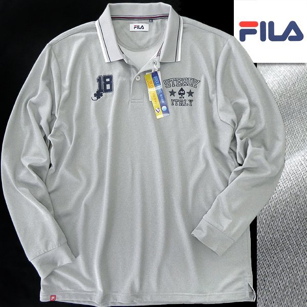 - 新品 FILA フィラ GOLF 吸汗速乾 ロゴ刺繍 長袖 ポロシャツ 3L 灰 【I44378】 メンズ シャツ ゴルフ スポーツ カジュアル UVカット