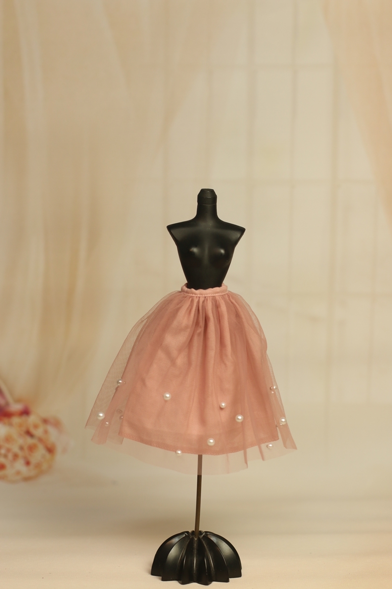 - 人形服S111-018オールドローズチュールビーズスカートmomoko、ジェニー、OBITSUボディ、MISAKI、ピュアニーモ
