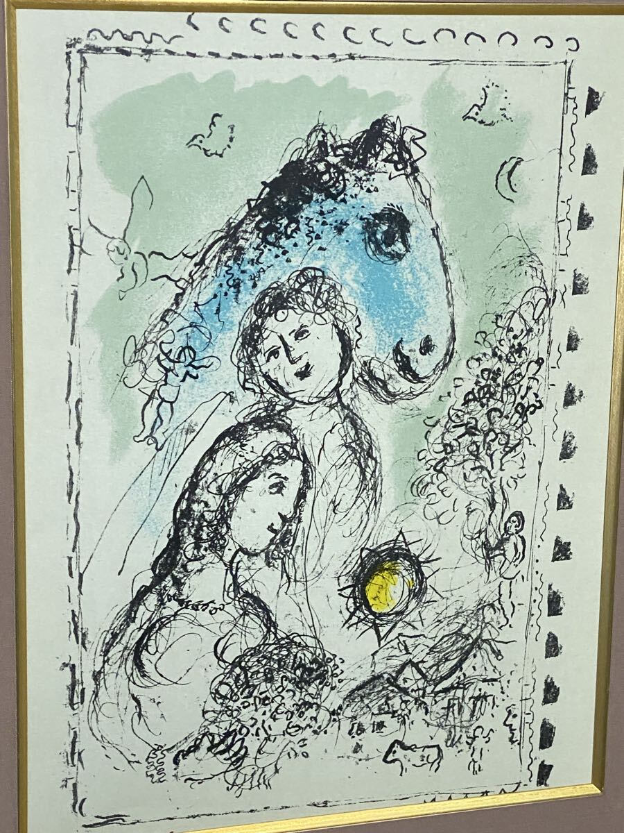 - 真作 リトグラフ マルク・シャガール 【青い馬と恋人達】 額縁 額装 インテリア レゾネ