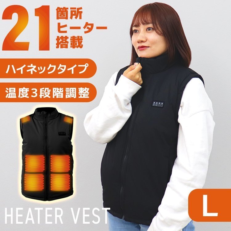 > 【フードなし/ブラックL】電熱ベスト ヒーターベスト バッテリー対応 3段階温度調整 軽量 洗える 撥水 作業着 レディース メンズ 兼用