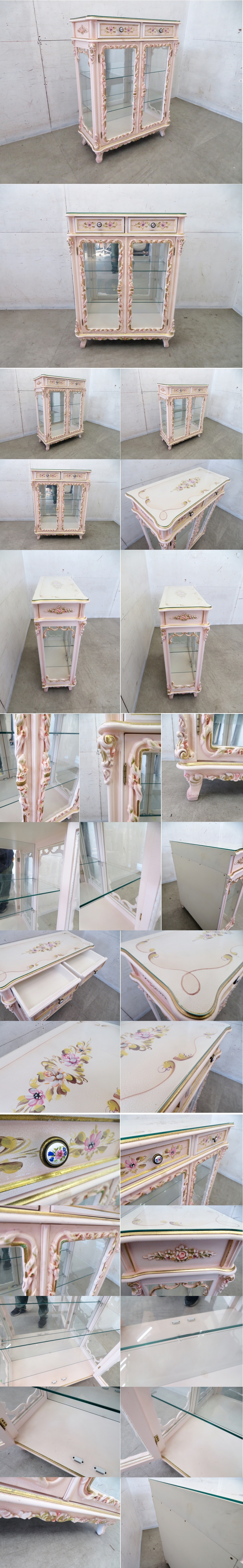 - ■P269■美品■ロココ■エレガント■姫家具■花柄■ガラスキャビネット■ディスプレイケース■飾り棚■