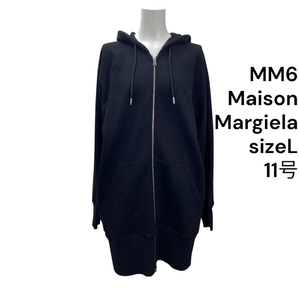 > 未使用 エムエムシックス MM6 ロングパーカー ブルゾン 長袖 ブラック コットン L、11号 レディース S5T422
