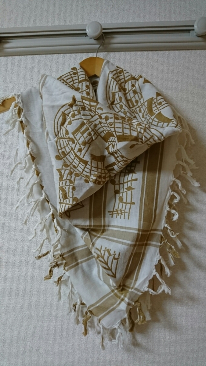 - 07SSnumbernineナンバーナイン音符柄ストール音譜コットンカシミア素材