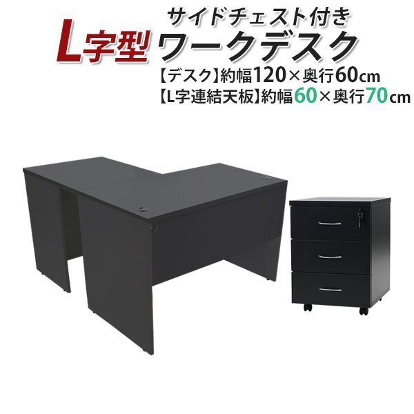 - 送料無料 ワークデスク L字型 3段 サイドチェスト 約W120×D130×H74 幕板 ゲーミングデスク L字デスク L型 右用 ブラック