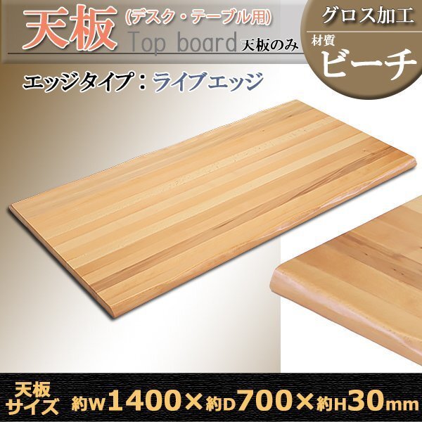 - 送料無料 天板 デスク テーブル 天板のみ ビーチ材 W1400×D700×H30mm ビーチ ライブエッジ グロス加工 高級 木製 木材 天然木 無垢材