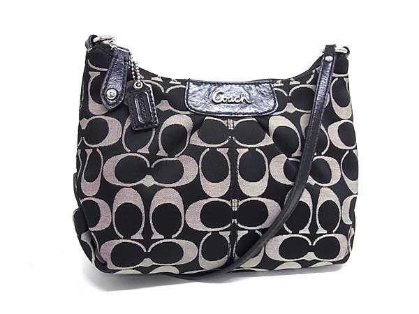 > 1円 ■美品■ COACH コーチ シグネチャー キャンバス クロスボディ ショルダーバッグ 斜め掛け レディース ブラック系 BQ1995