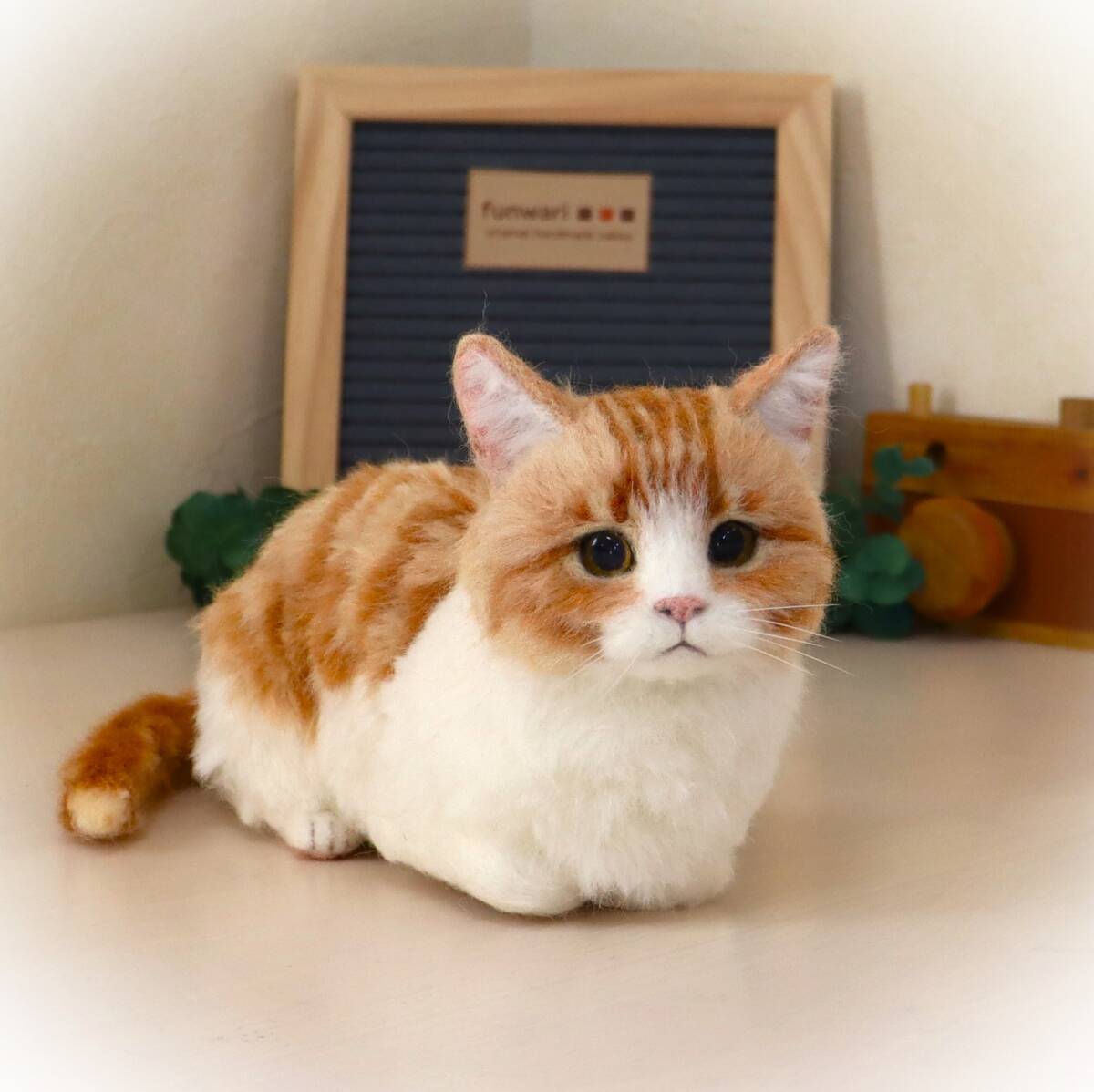 - funwari■□■ 羊毛フェルト 茶トラ白 小さめサイズ大人猫 香箱座り 猫 ハンドメイド