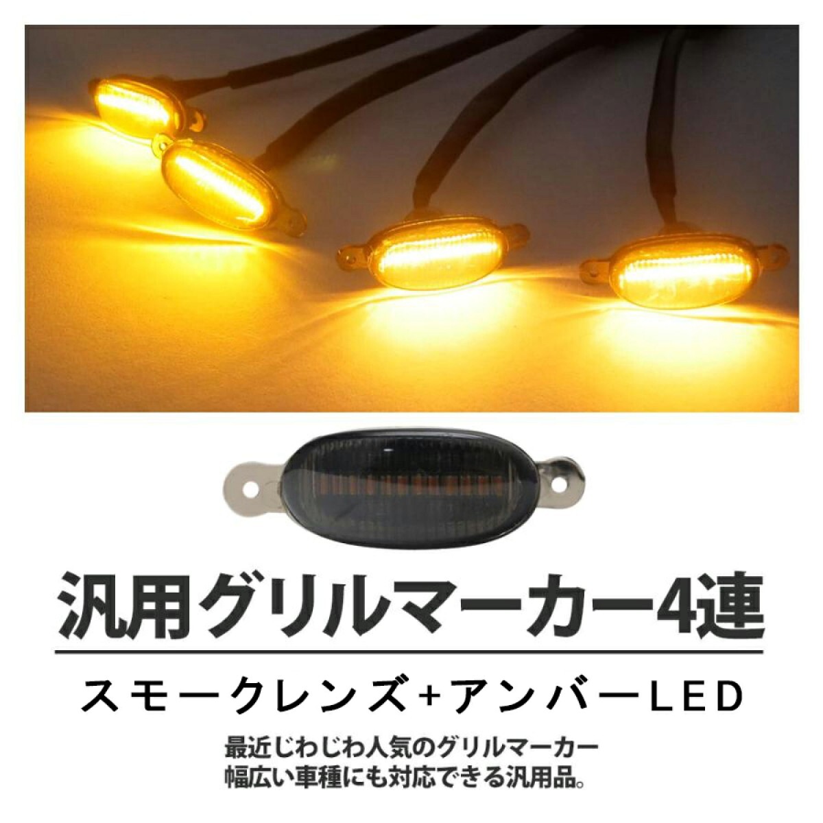 - 4連 12V LED グリルマーカー アンバー 4LED スモークカバー 4個