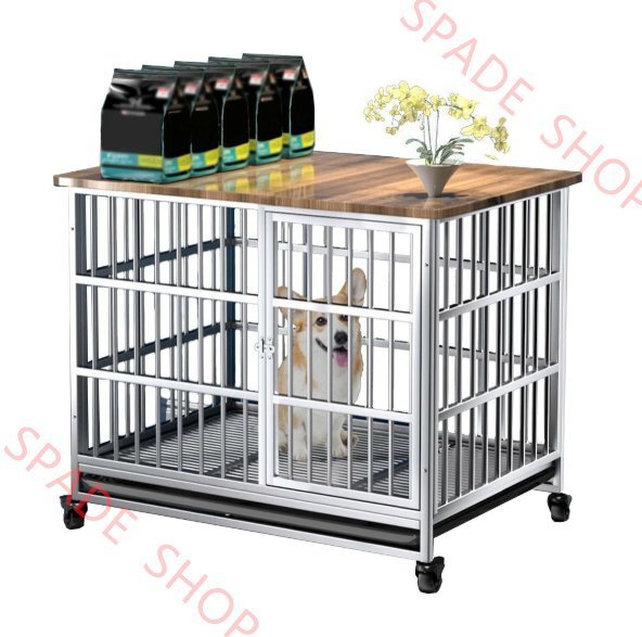 - ペットケージ 木製犬小屋ステンレス鋼 犬用ケージ 屋根付き頑丈 角パイプ 錆防止組み立て室内 おしゃれ ドッグケージ お手入れ簡単 Mサイズ
