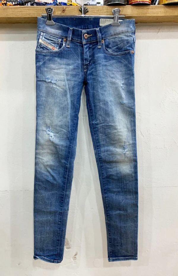 - 1177★DIESEL/ディーゼル ローライズダメージ加工ストレッチスキニーデニム WASH0809B W23×L32 インディゴ レディース 美品 USED ★